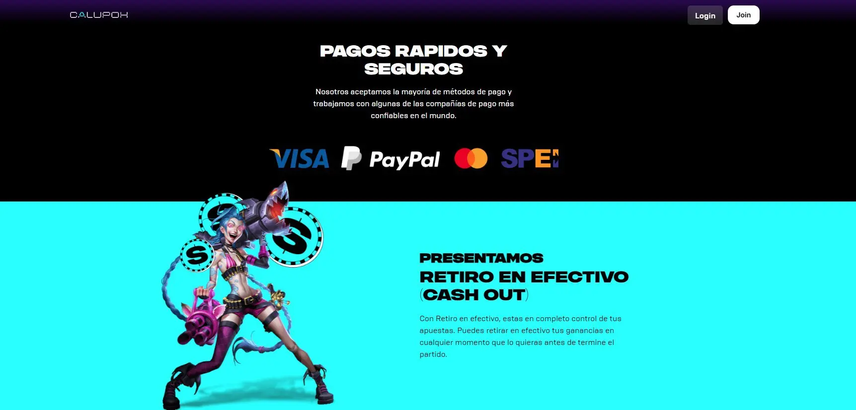 Calupoh ofrece múltiples opciones de pago que se adaptan a las necesidades de los jugadores en México, facilitando depósitos y retiros rápidos y seguros. La seguridad de las transacciones es una prioridad, proporcionando tranquilidad a todos los usuarios.